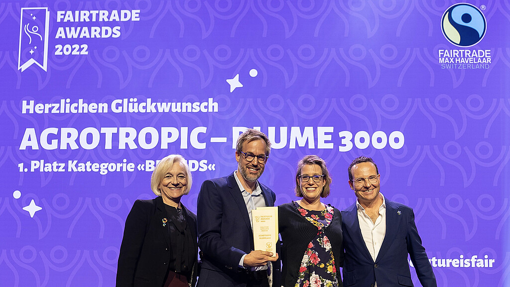 agrotropic und blume 3000 gewinnen die ersten Fairtrade Awards im Bereich Brands/Manufacturing/Trade für das Engagement von Bernhard bei der Ausarbeitung des Fairtrade-Standards für Blumen, der in den 90er Jahren seinen Anfang nahm.